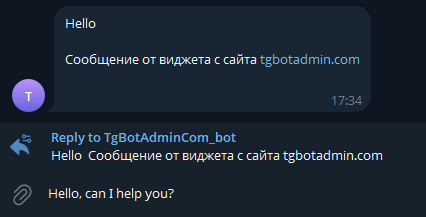 Сообщение от пользователя придет на Ваш телеграм аккаунт от имени Вашего бота прикрепленного к нашему сервису